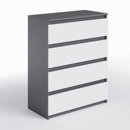 Комод оснащений чотирма висувними ящиками, які забезпечать достатньо місця для зберігання різноманітних предметів. Завдяки цій функціональності ви зможете організувати ваші речі таким чином, щоб вони були легко доступні і при цьому не створювали безладу в приміщенні. Виготовлений з ламінованого ДСП, цей комод є надійним, довговічним і міцним матеріалом, який гарантує довгий термін служби виробу. Це забезпечує не тільки безпеку ваших речей, але й довгострокове задоволення від використання цього функціонального елемента меблів у вашому будинку.