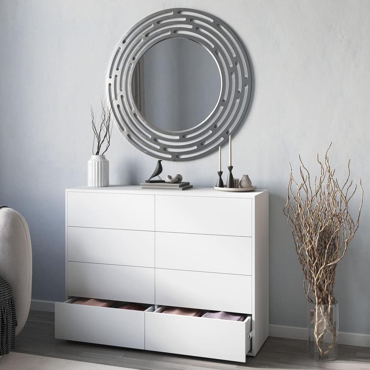 Сучасний комод на 8 містких шухляд - це стильні та практичні меблі, створені для впорядкованого зберігання одягу, текстилю та повсякденних речей. Його лаконічний дизайн без ручок ідеально доповнює інтер'єр у стилі модерн, мінімалізм або сканді, роблячи простір візуально охайним і гармонійним. Комод не лише економить місце, а й додає естетики будь-якій кімнаті - від вітальні до спальні чи передпокою.